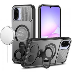 For For Samsung Galaxy A07 Transparent HQ Hybrid with Metallic Camera Stand Magnetic Ring Case - Black