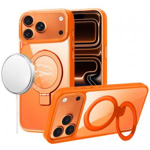 For iPhone 17 Pro Transparent HQ Hybrid with Metallic Camera Stand Magnetic Ring Case - Cosmic Orange