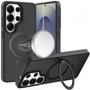 For Samsung s26 Ultra Ring Magnetic Kickstand Hybrid Case Cover - Black