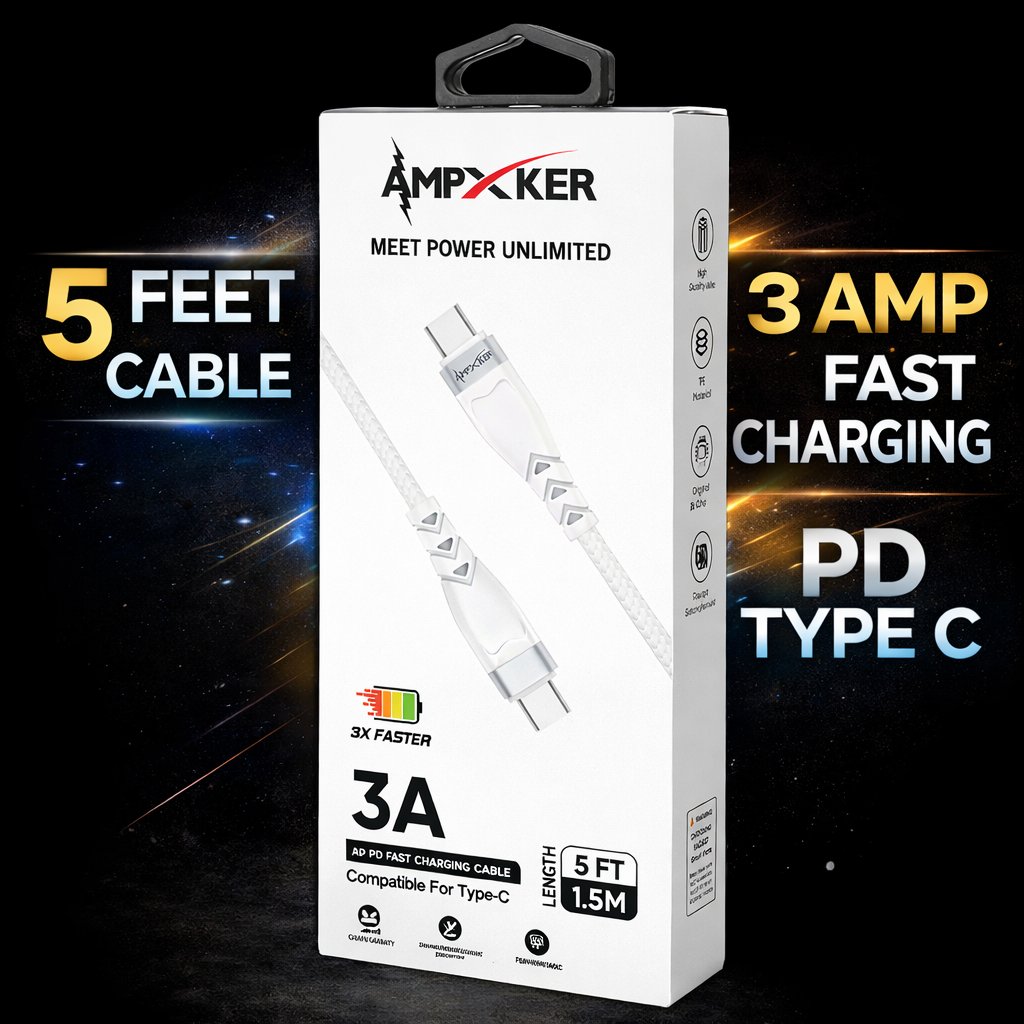 PD Type C - Cable - 3 AMP - Fast Charging - Nylon Braided Aluminium Alloy - WHITE (LANE A6) (item#3)