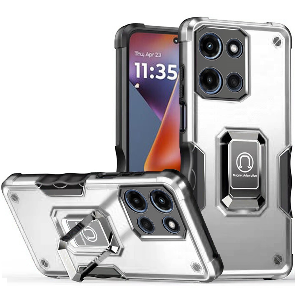 For Motorola Moto G 5G 2025 OPTIMUM Magnetic Ring Stand Hybrid Case Cover - Silver