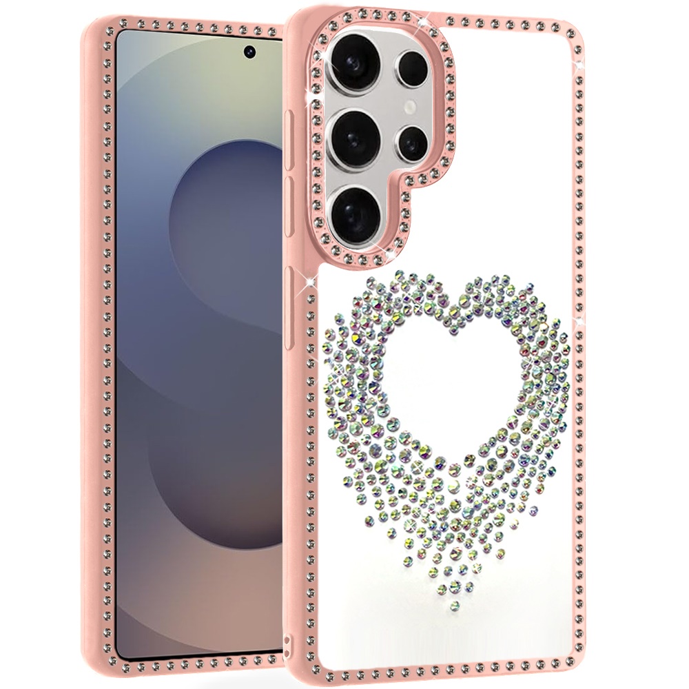 For Samsung s25 Ultra Beautiful ANGEL Hearts Glitter Shimmer Diamond Edged Hybrid Case - Pink