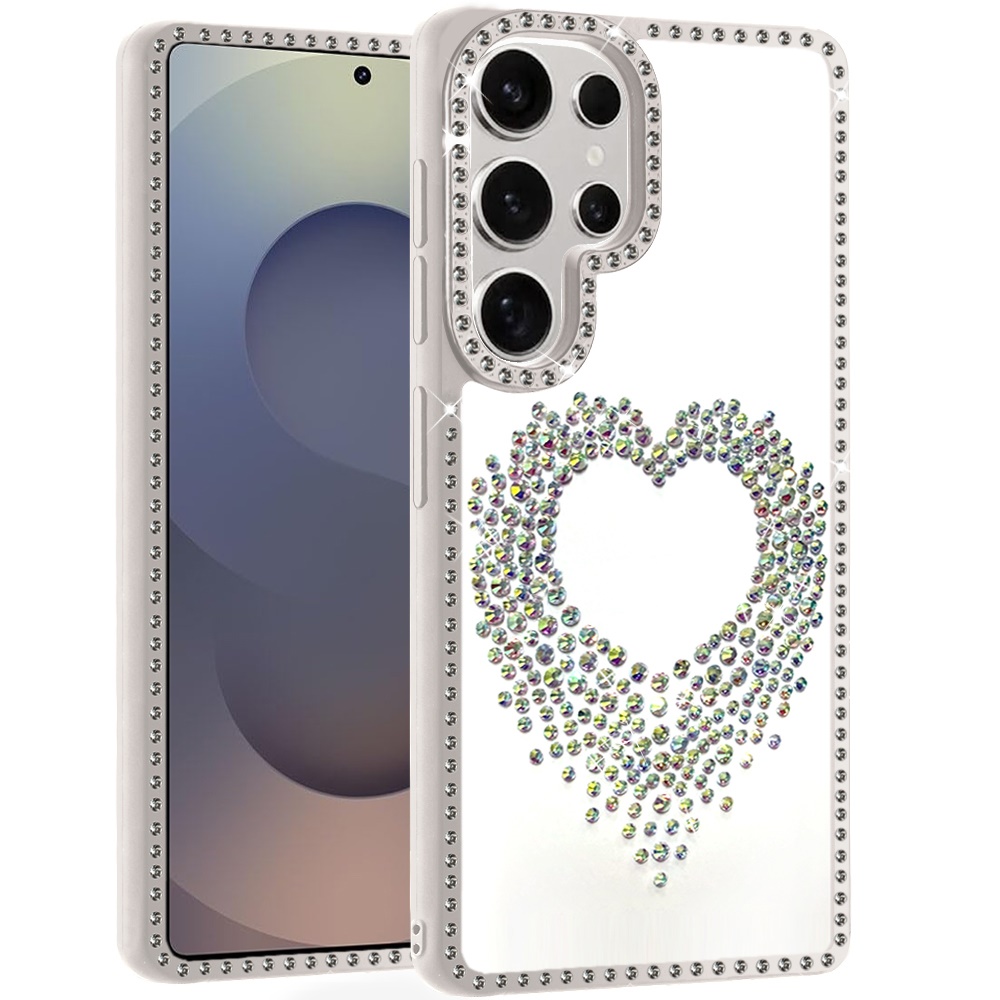 For Samsung s25 Ultra Beautiful ANGEL Hearts Glitter Shimmer Diamond Edged Hybrid Case - Beige