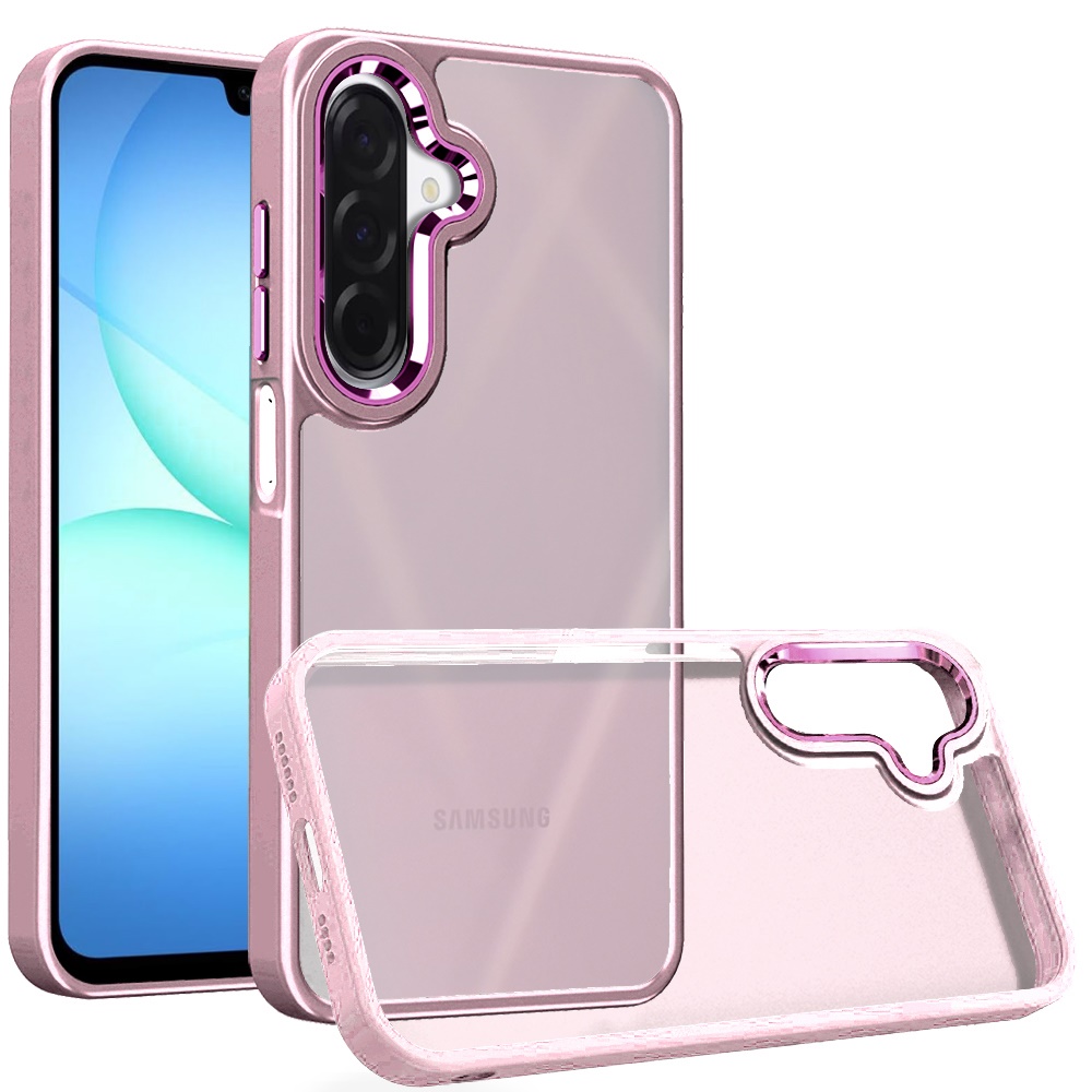 For Samsung A17 5G Polished Oil Thick Acrylic Metal Button Hybrid Case Cover - Light Pink