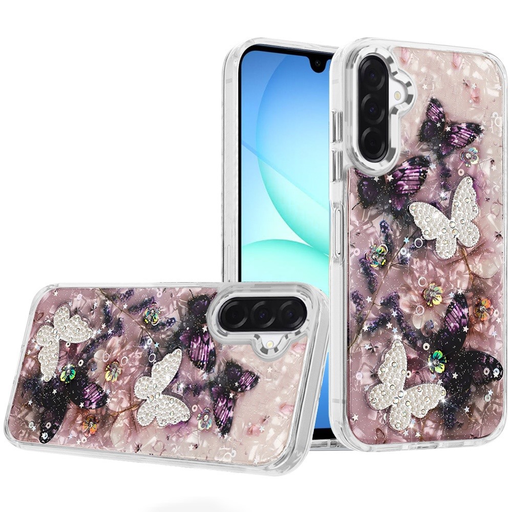 For Samsung A17 5G Epoxy Glitter Butterfly Ornaments Design HQ Metal Buttons Hybrid - 5