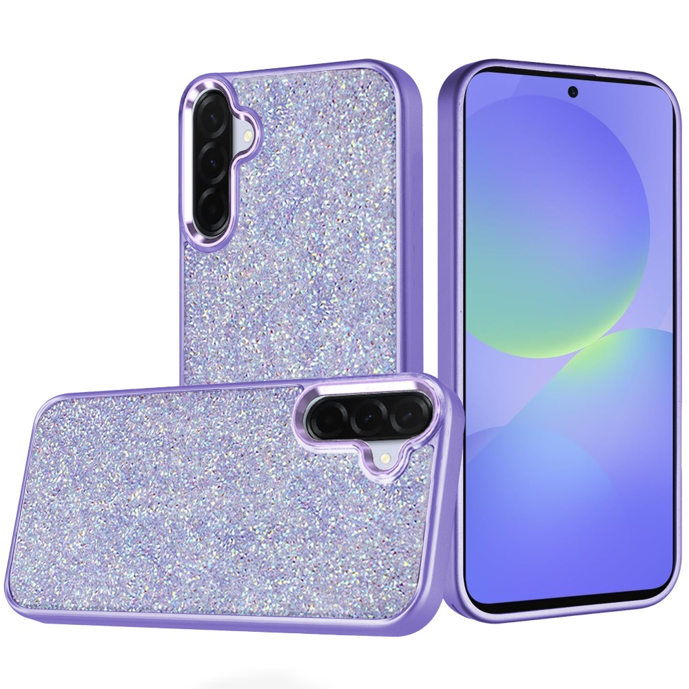 For Samsung Galaxy A36 Crystal Glass Diamond with Metallic Buttons and Edges Hybrid Case - Dark Purple