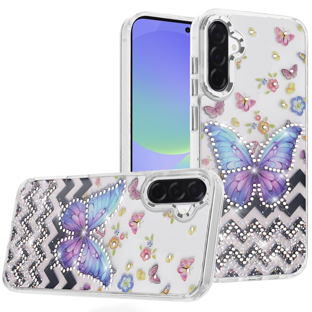 For Samsung Galaxy A36 Resin Epoxy Design Diamond Metal Edged Hybrid Case - A