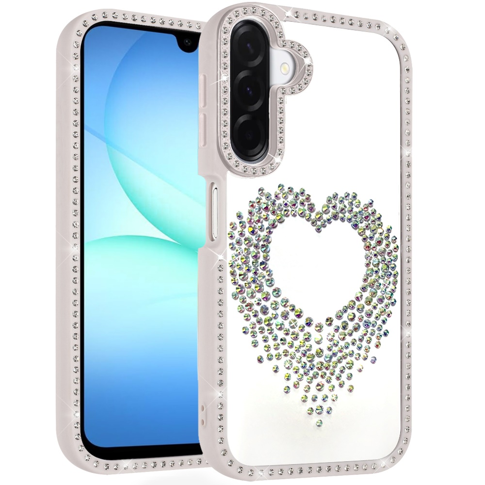 For Samsung A17 5G Beautiful ANGEL Hearts Glitter Shimmer Diamond Edged Hybrid Case - Beige