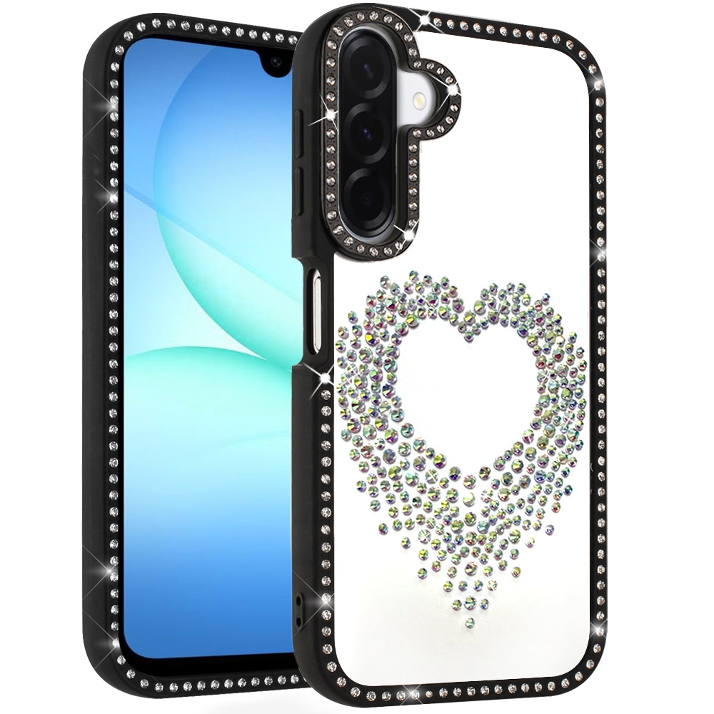For Samsung A17 5G Beautiful ANGEL Hearts Glitter Shimmer Diamond Edged Hybrid Case - Black