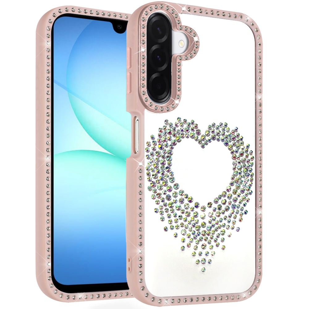 For Samsung A17 5G Beautiful ANGEL Hearts Glitter Shimmer Diamond Edged Hybrid Case - Pink