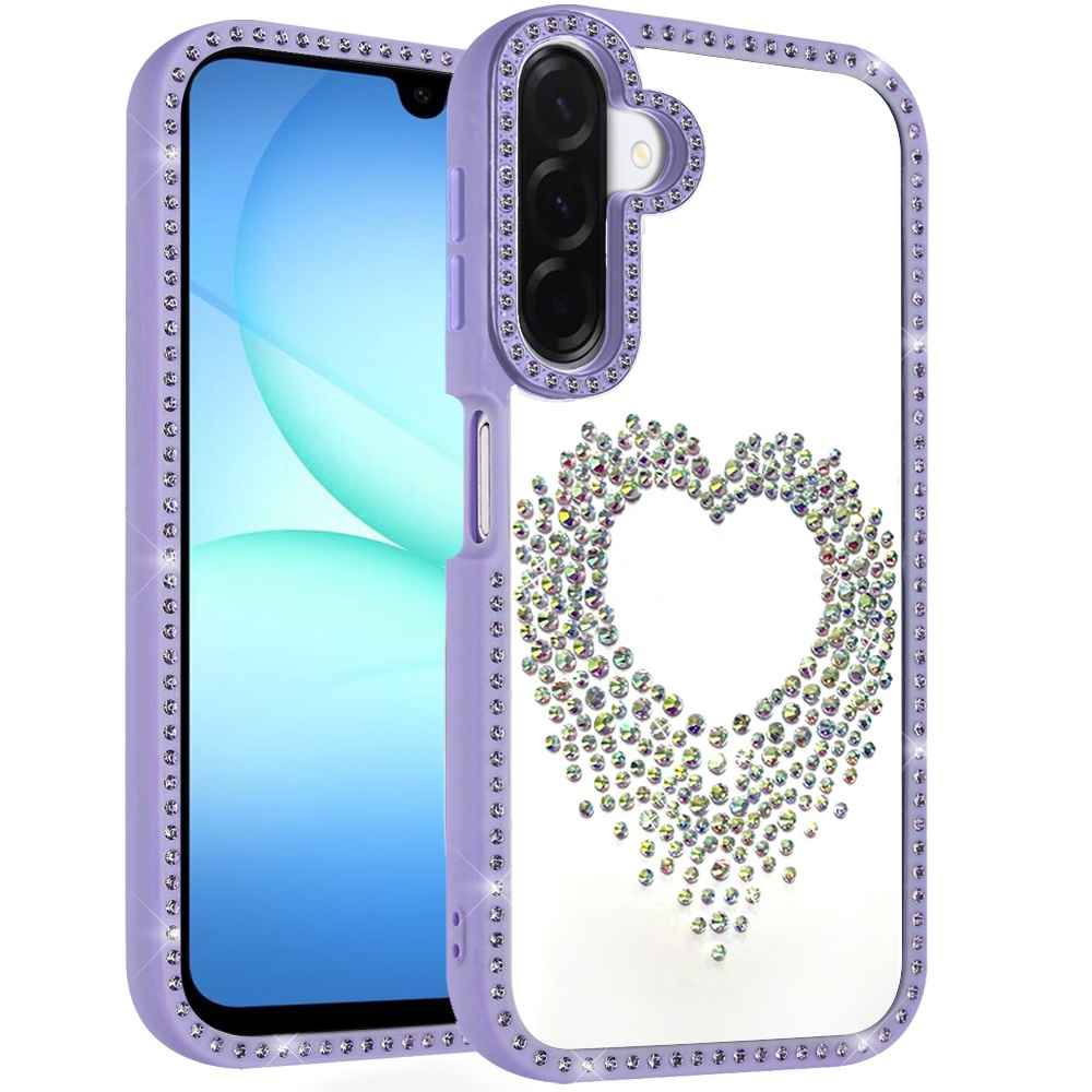 For Samsung A17 5G Beautiful ANGEL Hearts Glitter Shimmer Diamond Edged Hybrid Case - Purple