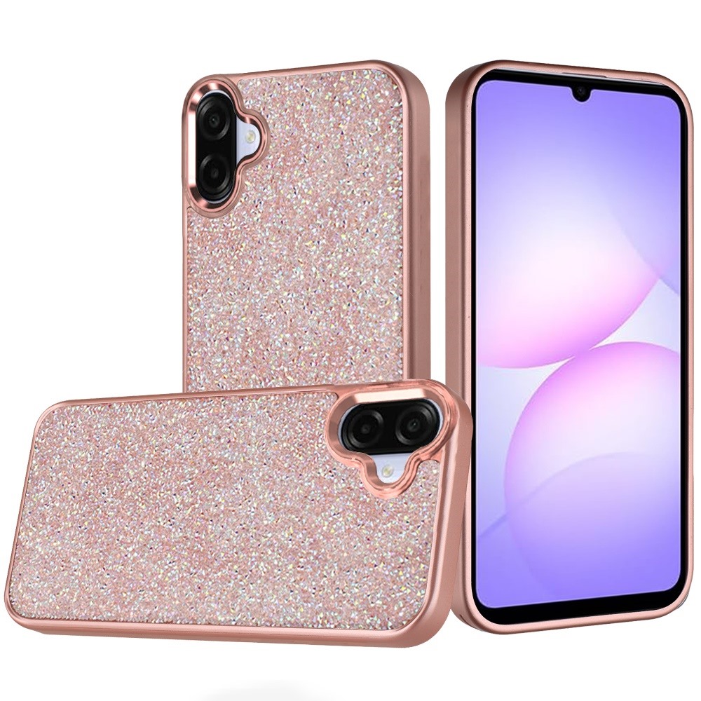 For Samsung Galaxy A07 Crystal Glass Diamond with Metallic Buttons and Edges Hybrid Case - Rose Gold