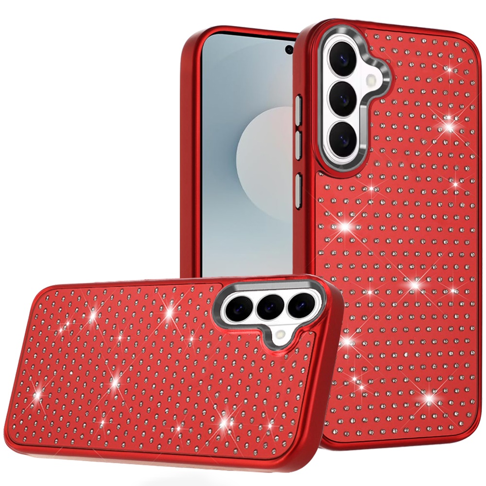 For Samsung s26 Beautiful Diamond Metallic Design Metal Chrome Edged Hybrid - Red