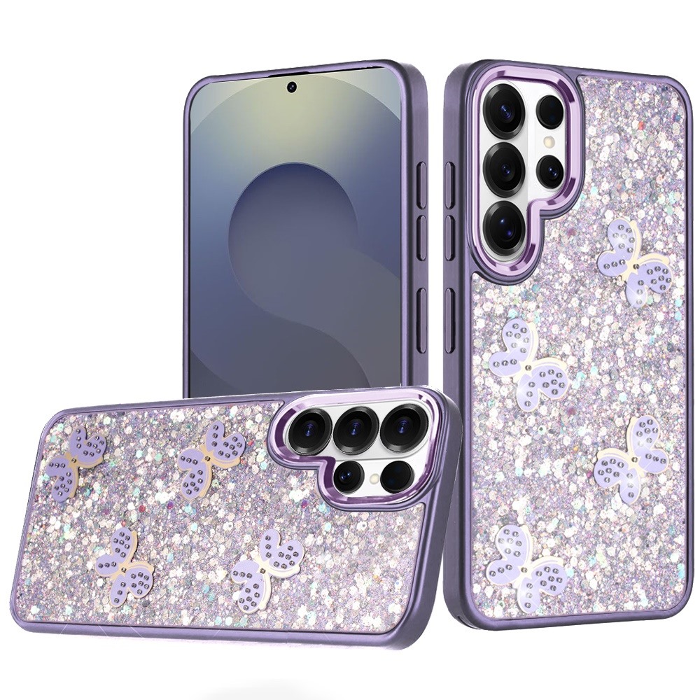 For Samsung s26 Ultra Cute Butterfly Ornaments Diamonds Shimmer Matching Metallic HQ Hybrid - Dark Purple