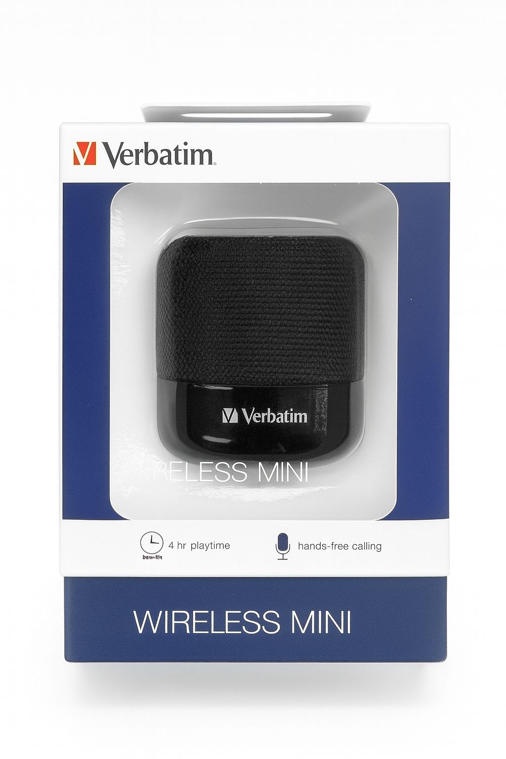 Verbatim Wireless Mini Bluetooth Speaker - Powerful sound in a compact, small and travel-friendly speaker - Built-in microphone for hands-free calling- Rechargeable battery - Black (LANE A8- VERBATIM-1)