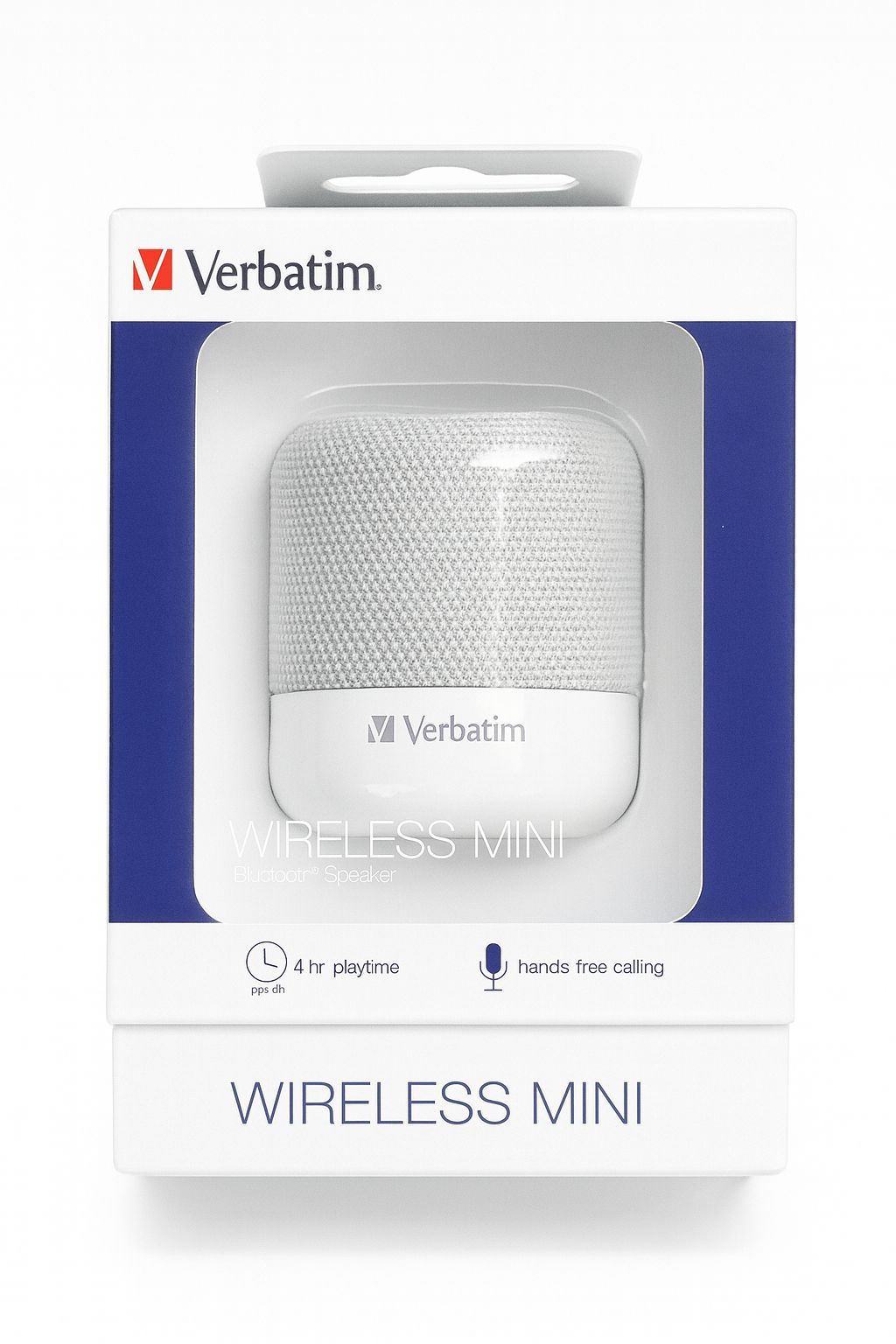 Verbatim Wireless Mini Bluetooth Speaker - Powerful sound in a compact, small and travel-friendly speaker - Built-in microphone for hands-free calling- Rechargeable battery - WHITE (LANE A8- VERBATIM-2)