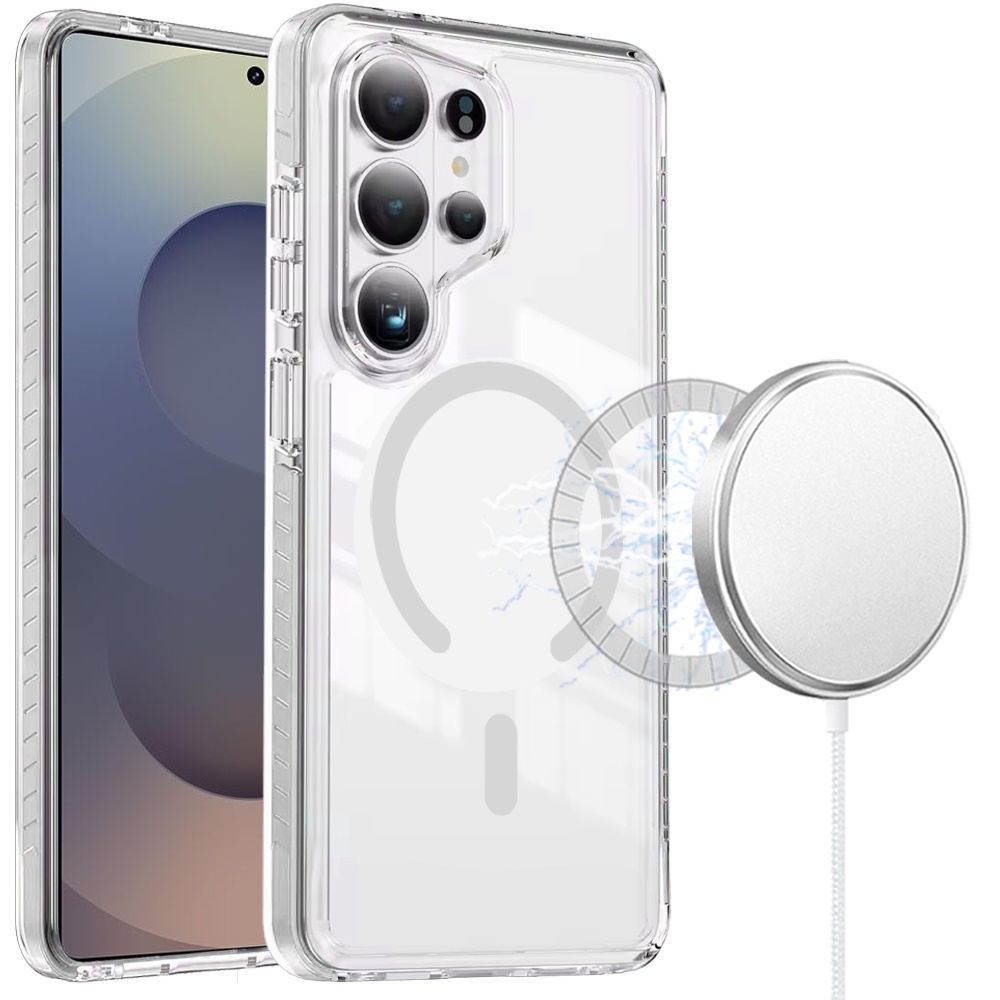 For Samsung s26 Ultra Thick Transparent Colored Edged Magnetic Hybrid Case - White