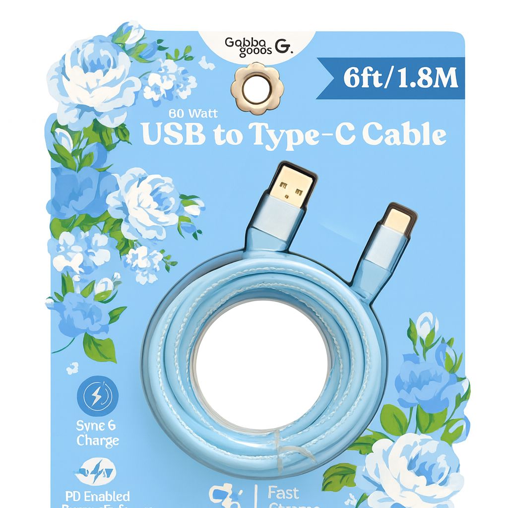 GG 60 WATT 6FT USB TO TYPE-C FAST CHARGE A TO C CABLE - TANGLE FREE - SYNC&CHARGE - PD ENABLED POWER DELIVERY - GG-AC6PT-BLU - BLUE (D14 GG#K)