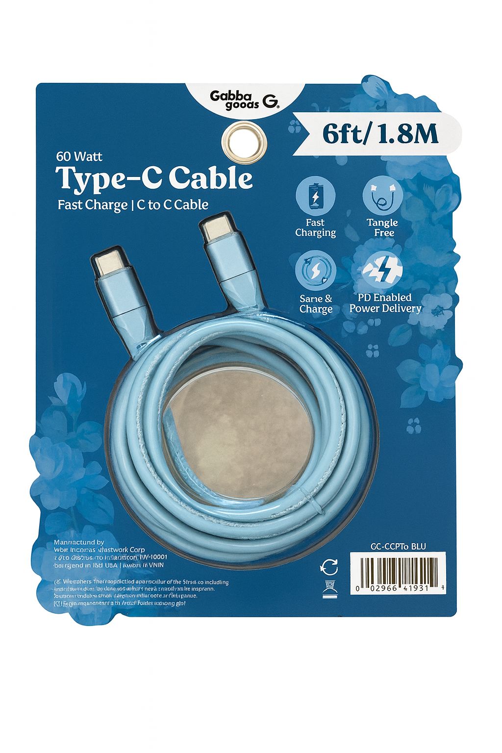 GG 60 WATT 6FT TYPE-C FAST CHARGE C TO C CABLE - TANGLE FREE - SYNC&CHARGE - PD ENABLED POWER DELIVERY - GG-CCPT6-BLU - BLUE(D13 GG#O)