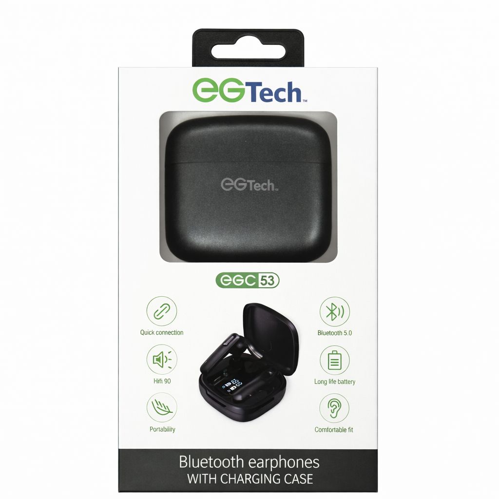 EG Tech True Wireless Bluetooth Earbuds with Charging Case in BLACK 5.0V with Display (B10 EGTECH 9)