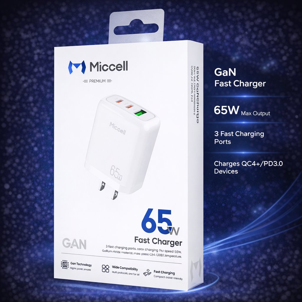 Miccell 65W Fast Wall Charger USB-C 1x USB-A with PD Charger Only - White (D19 MICCELL-2)