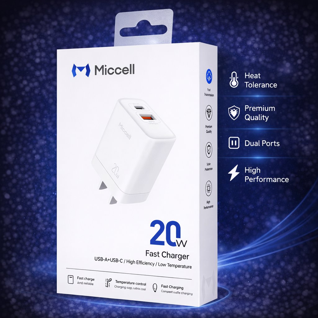 Miccell 20W Fast Wall Charger USB-C 1x USB-A with PD Charger Only - White (D19 MICCELL-1)
