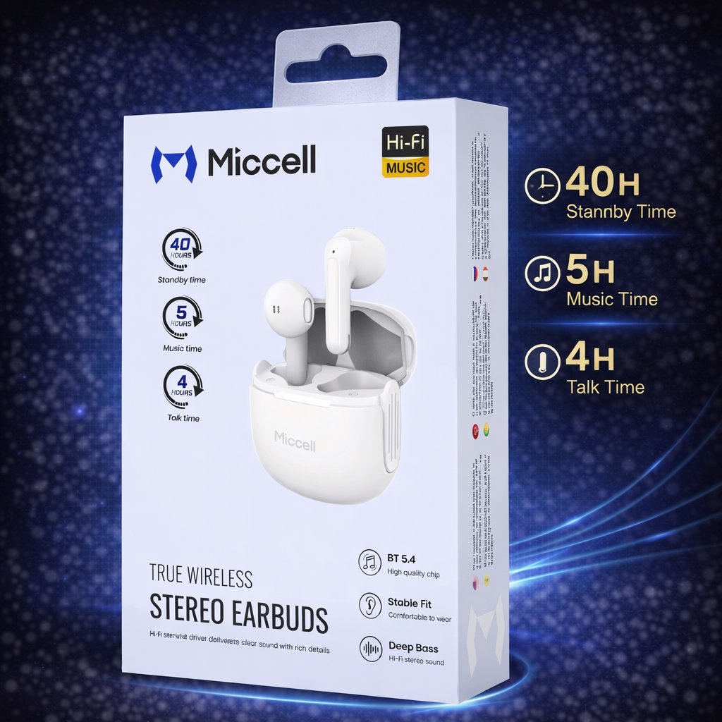 Micell BH109 True Wireless Stereo Earbuds with Charging Case - White (D18 MICCELL-16)