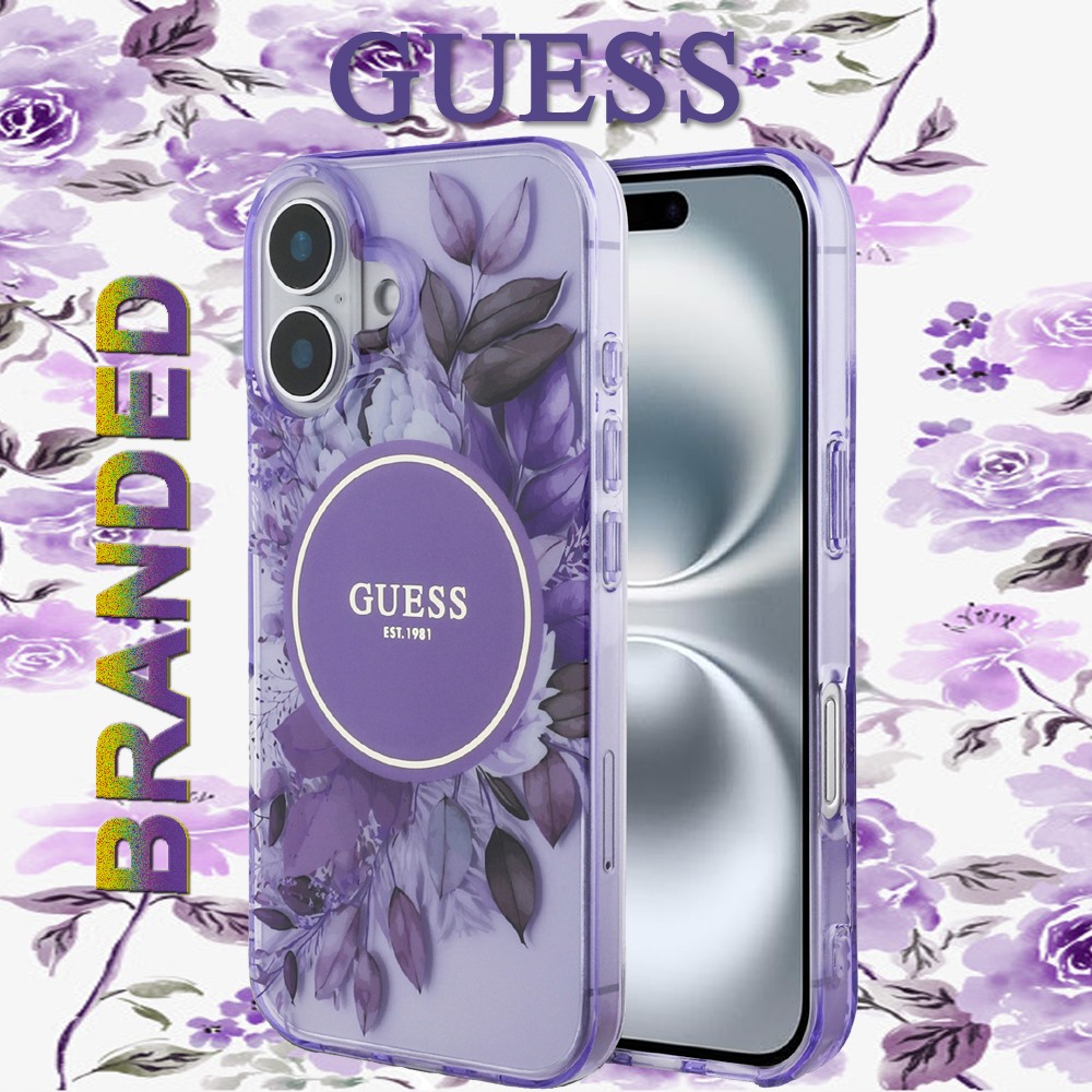 For IP 16 - GUESS MAGSAFE IML FLOWER & TONAL CIRCLE - Purple