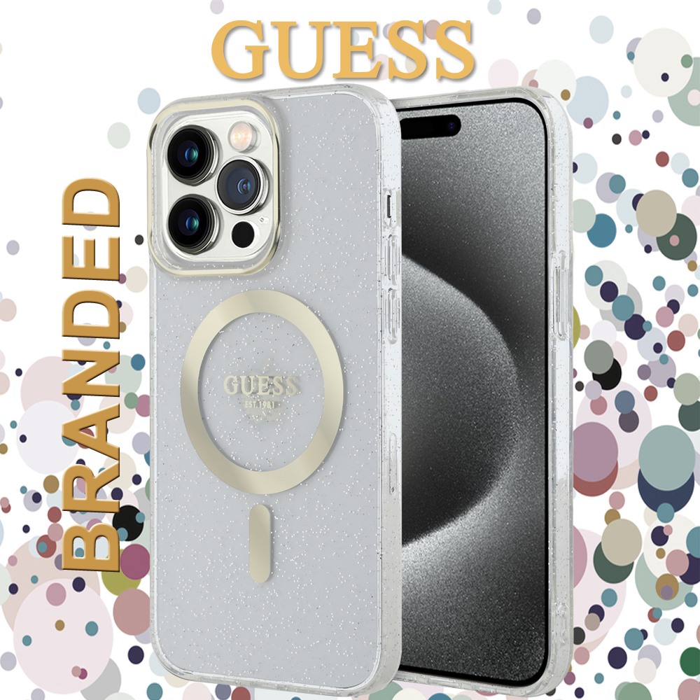 For IP 16 - GUESS MAGSAFE IML GLITTER TRANSPARENT - Clear