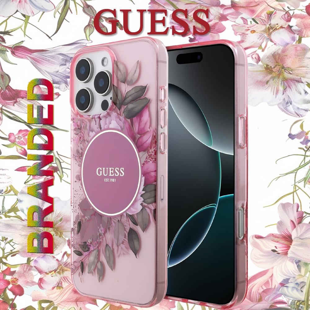 For IP 16 Pro Max - GUESS MAGSAFE IML FLOWER & TONAL CIRCLE - Pink