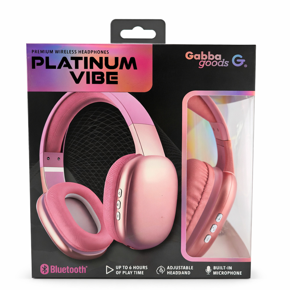 GG PLATINUM VIBE Wireless Over Ear Bluetooth Headphones with Microphone Noise Reduction Bluetooth Wired Micro SD - Pink (B18 GG-2)