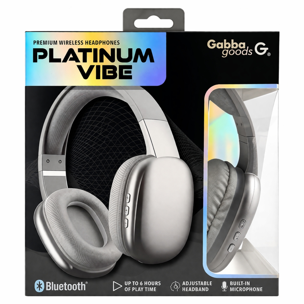 GG PLATINUM VIBE Wireless Over Ear Bluetooth Headphones with Microphone Noise Reduction Bluetooth Wired Micro SD - SILVER (B18 GG-7)